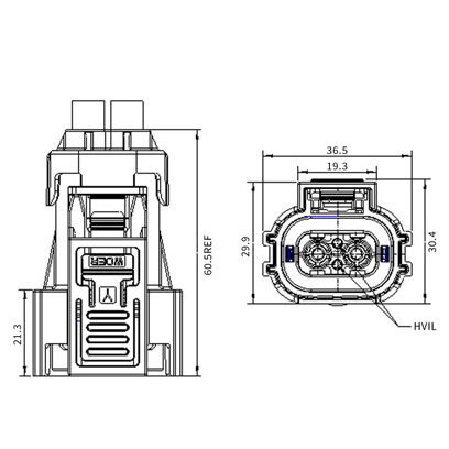 | 10 | HV280L03*N02 | 插座*键位无高压互锁插座 | 2.5mm²非屏蔽线 |