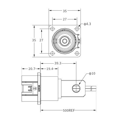 | 5 | HPL00*-300-10M10 | 无高压互锁*键位M10螺纹插座 | M10 |