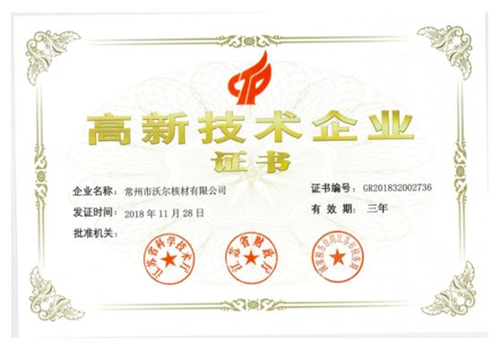 江苏省2018年度第二批认定高新技术企业名单公布,沃尔核材子公司常州沃尔榜上有名,顺利通过了高新技术企业复审。